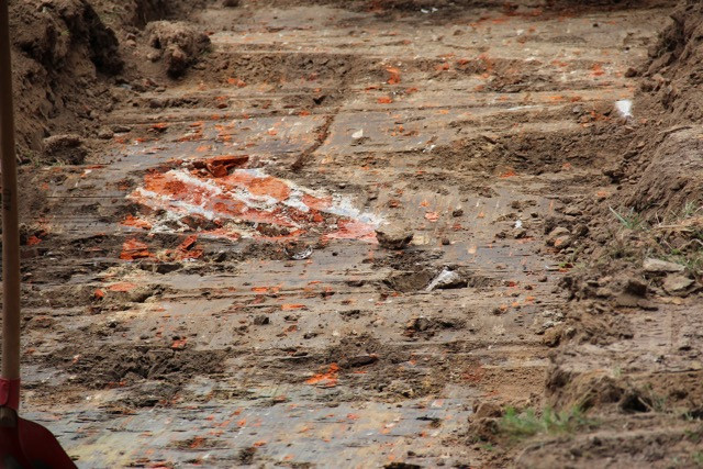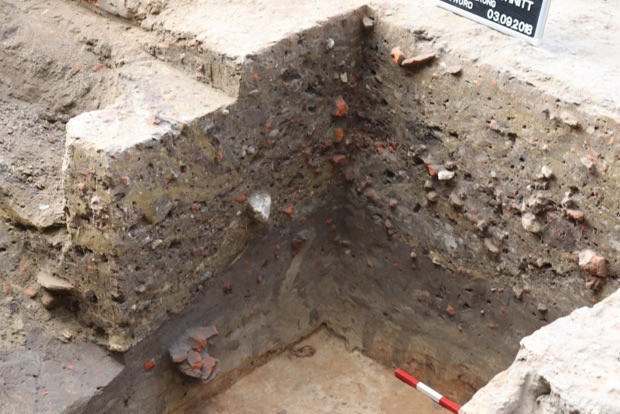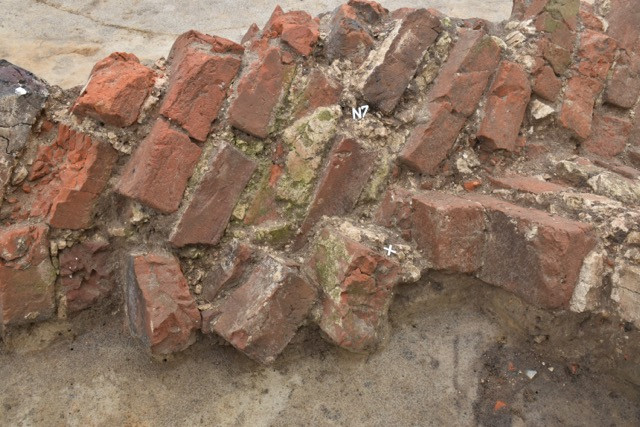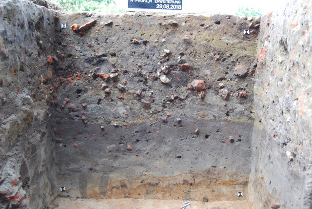 Am Nordprofil des Schnitts konnten drei diagonal gelagerte Backsteine erfasst werden, die bei weiterer Freilegung einen Teil einer ganzen Mauerecke bildeten (s. Kap. Mauerecke).